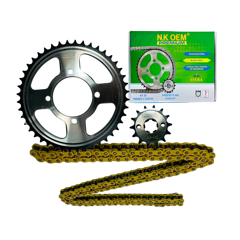 KIT ARRASTRE PREMIUM P/NEGRA YD-110 LIBERO 14T/44T + 428HX124L DORADA